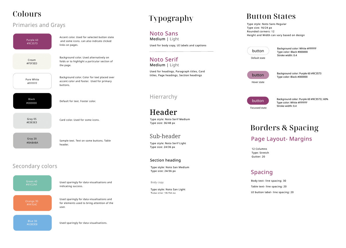 The style guide and design system was developed based on the brand guidelines stipulated by the Gates Foundation.